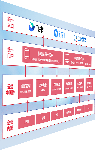 对协作平台提供支持服务,,,支持企业应用与协作平台对接,,,包含组织同步、、、、消息集成、、待办集成等。。。。支持目前主流的协作平台:钉钉、、企微和飞书。。。